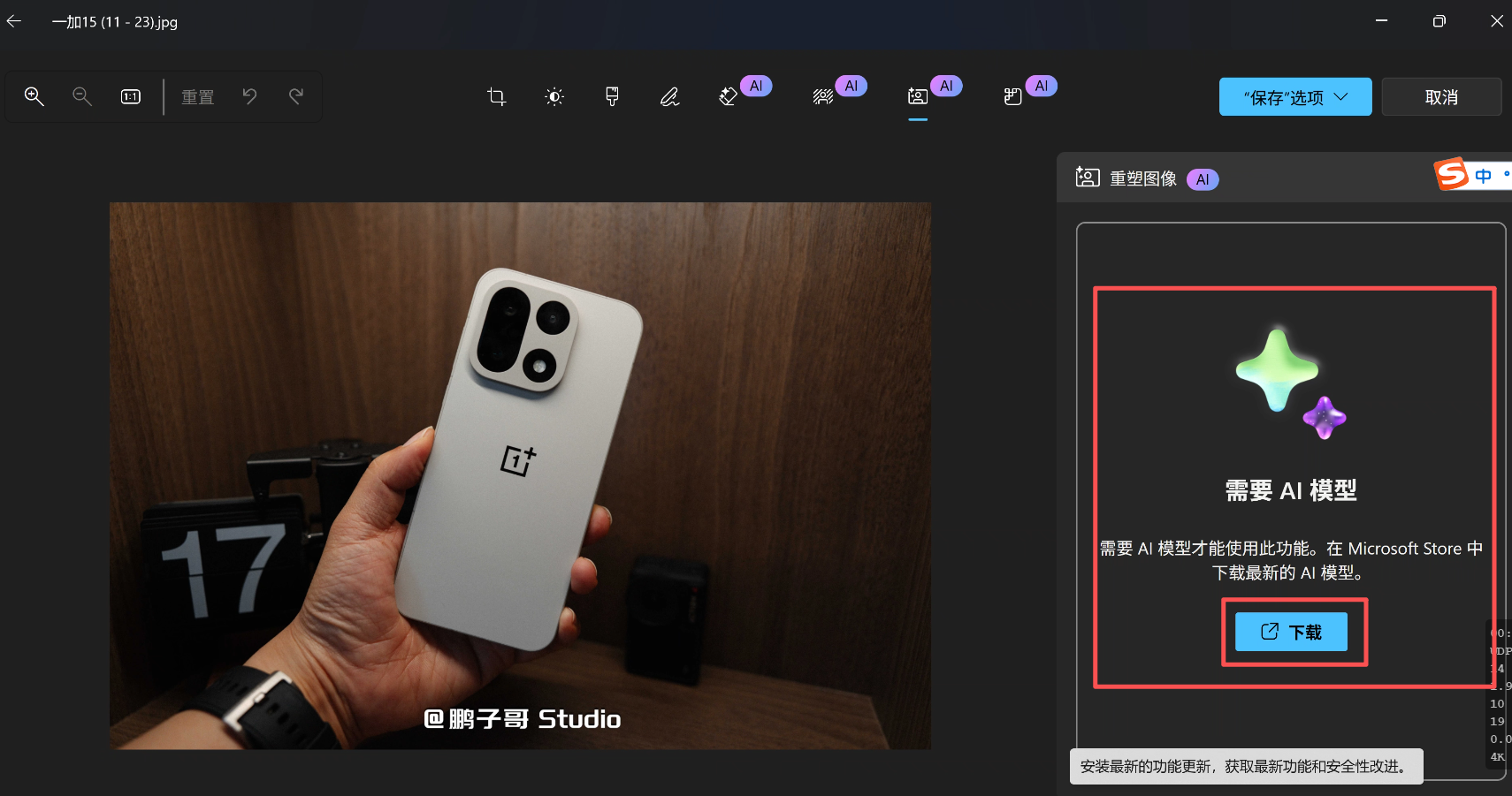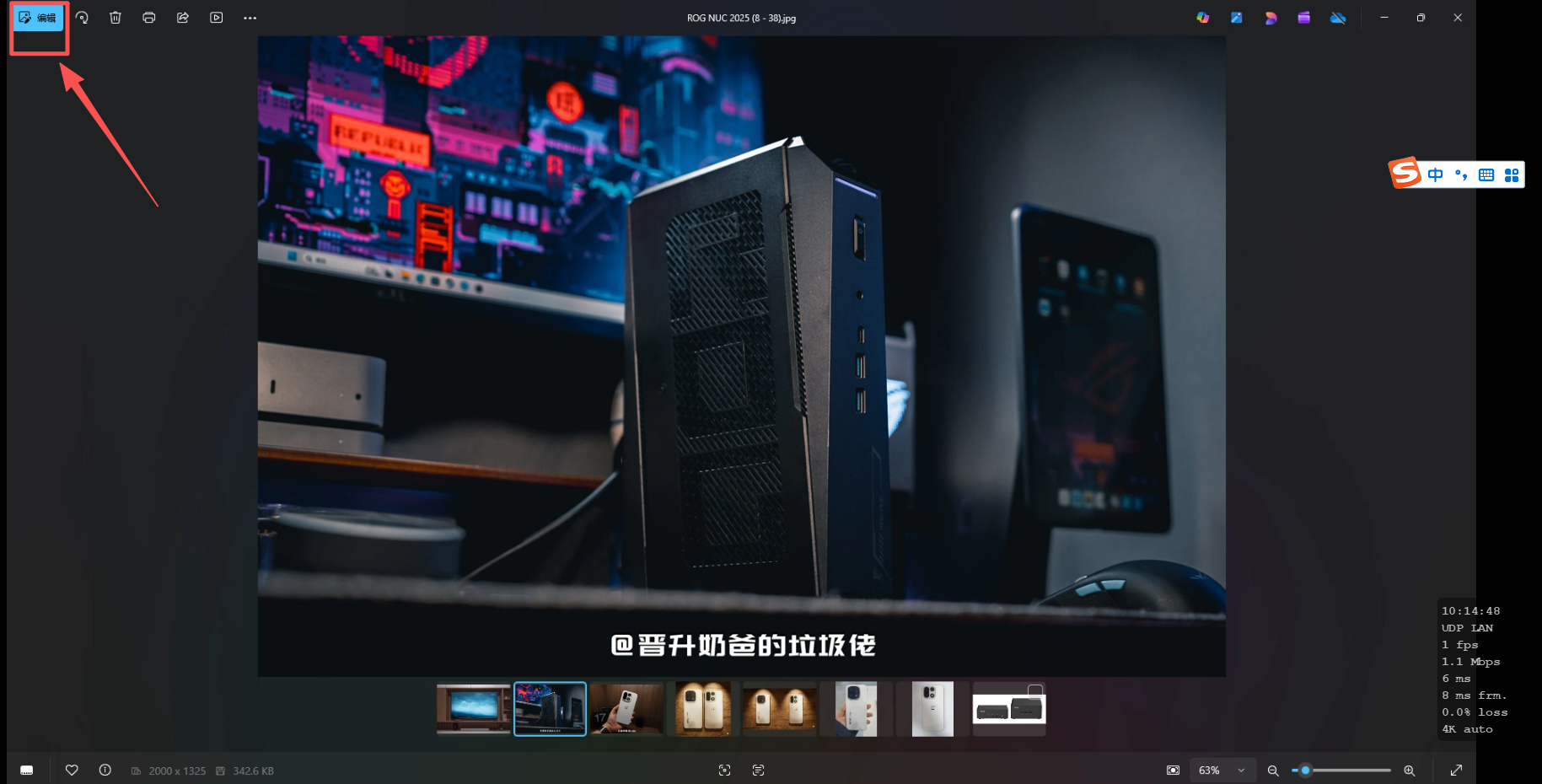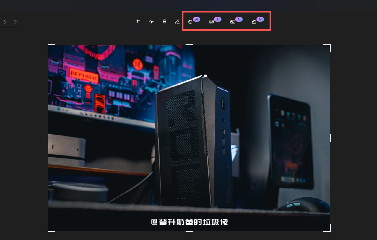 ▼是的,你没有看错,华硕PN54这台AI PC甚至不需要借助第三方应用就能够进行本地AI图像处理工作,打开一张图片后,可以看到左上角有了一个编辑按钮。