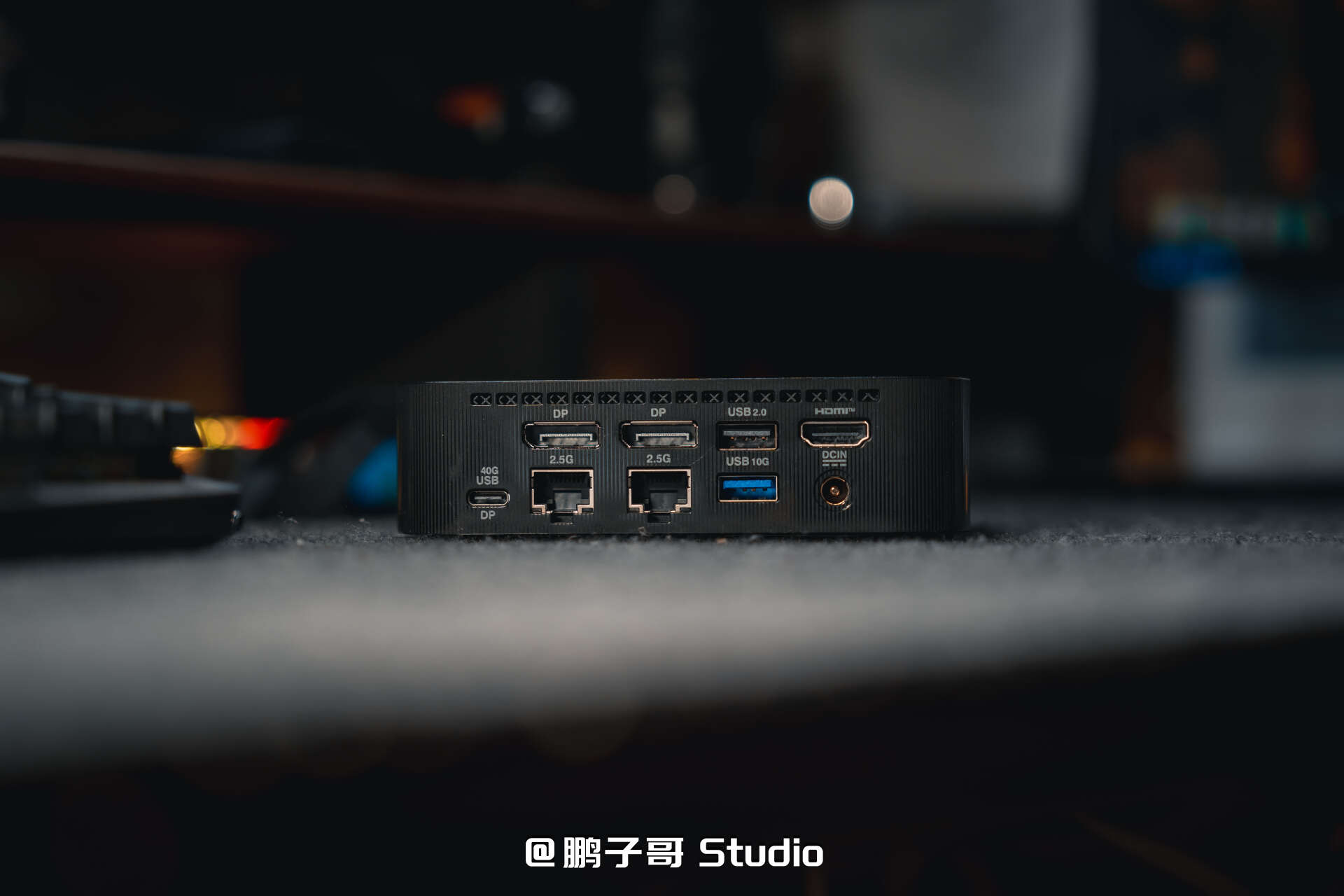 ▼在机身的背面,有两个DP接口(4K144@10Bit)、一个HDMI(2K120@8Bit),以及一个全功能USB4接口,可以同时连接4台显示器办公,两个2.5G网络接口可以在办公环境下灵活选择网络,一个USB2.0接口、一个USB3.0接口,用来连接外设刚刚好。
