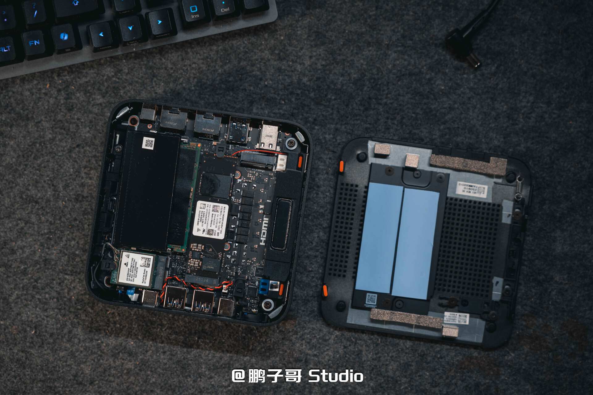 ▼机身内部有扬声器,两条2280规格M.2插槽,两条支持5600MHz频率的DDR5内存插槽,在这个整机价格与零件价格略有脱轨(内存与SSD)的时间节点,选择PN54整机更有性价比。配备的电源产自台达,20V 6A ==120W。