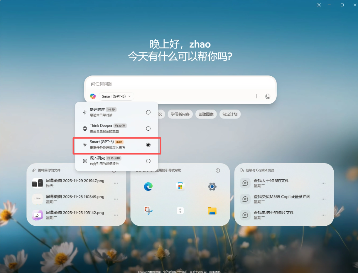 走进Copilot(安装、开启Copilot)▼首先PN54预装的365 Copilot 并不是真正让这台电脑变成AI PC的主要工具,这一点小伙伴们要注意哦。365 Copilot并不能搜索电脑中的文件,只能搜索OneDrive中的文件。那么我们怎么才能安装正经的Copilot呢。