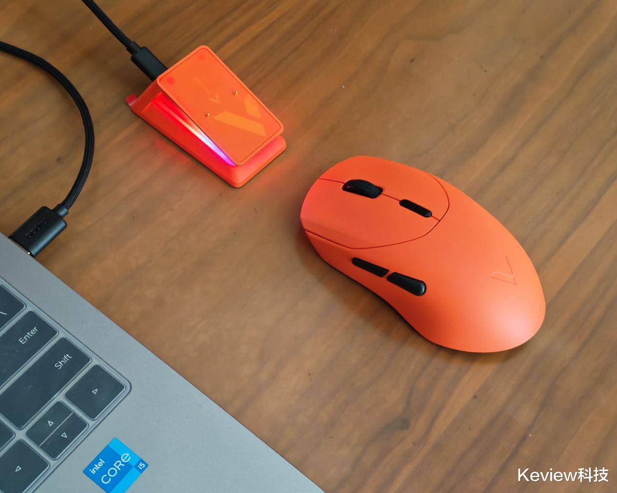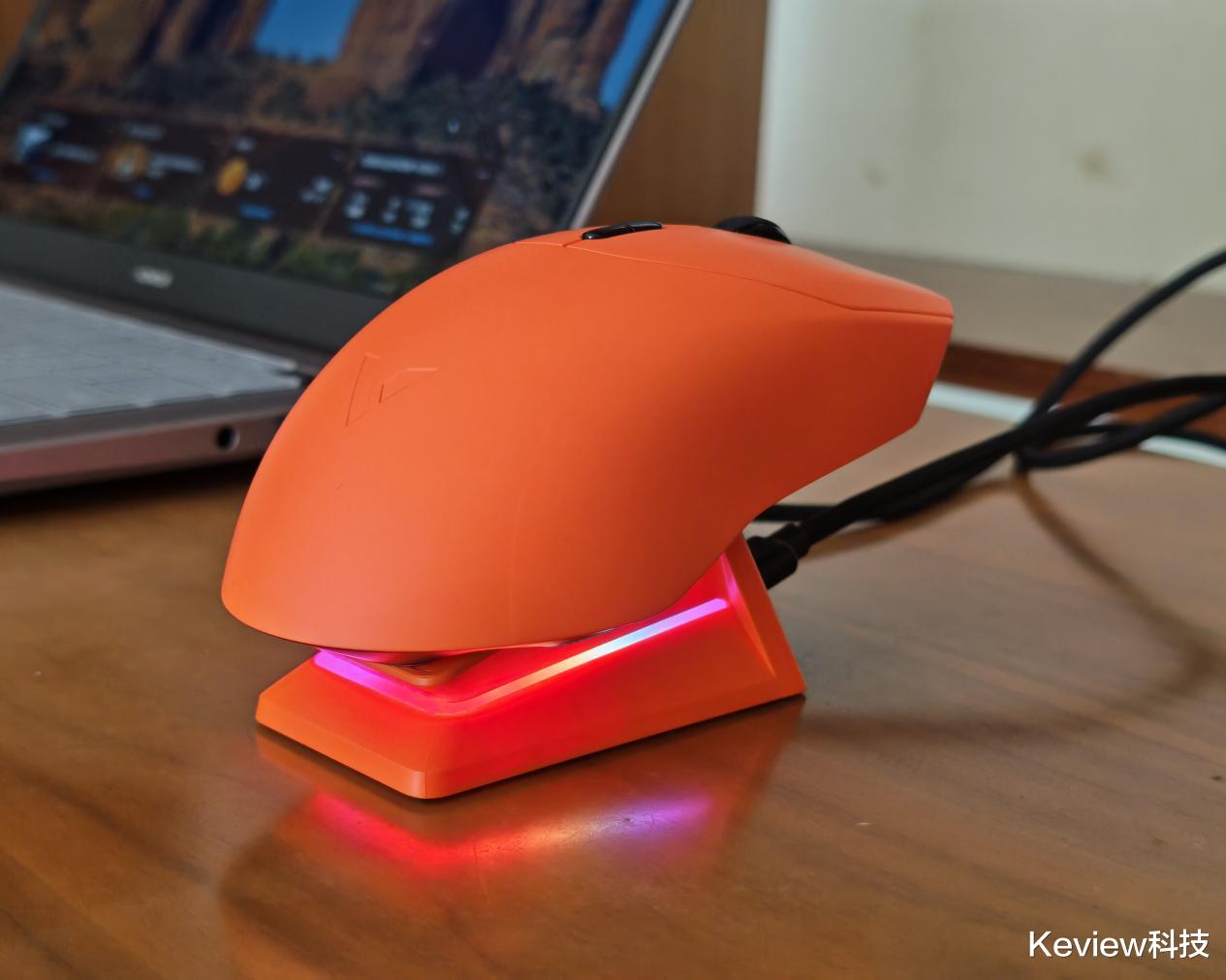 雷柏VT9焰影橙电竞鼠标的外观采用了独特的焰影橙配色,这种鲜艳的颜色在众多鼠标中脱颖而出,给人一种强烈的视觉冲击。