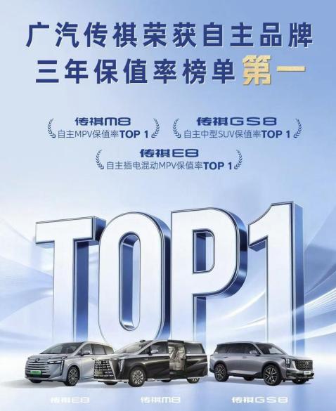 第一张牌:保值率,这是真金白银的“硬通货” 。在中国汽车流通协会的榜单上,传祺已经连续三年拿了自主品牌保值率第一。像GS8、M8这种主力车型,在各自的细分市场里也是保值冠军。