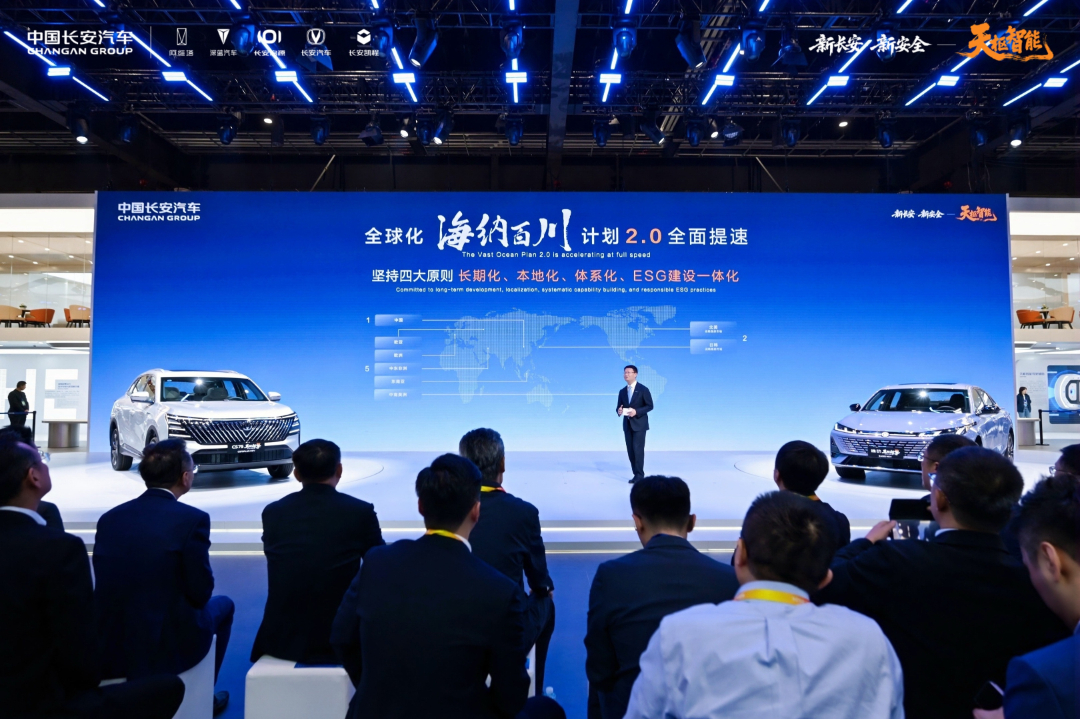 本届北京车展上发布的“海纳百川”计划2.0,提出坚持“长期化、本地化、体系化、ESG建设一体化”四大原则,推动全球化发展向制造、贸易、投资、服务、ESG建设等全业务综合型模式升级转型。未来,长安将围绕技术、产品、品牌、合作、投入、服务、团队七大维度全面升维,推动全球化发展迈入新阶段。在技术层面,长安以可靠、前沿、普惠的技术,为全球用户带来更高效、更安全、更智能的出行体验;产品层面,开发模式从“全球同步开发”向“全球原生+区域定制”跃升,全力打造全球大单品;品牌层面,以“长安蓝鲸超擎”“长安天枢智能”为技术支撑,以启源S05、Q05、长安CS55等全球大单品为载体,以“DNA设计5.0”传递科技关怀。