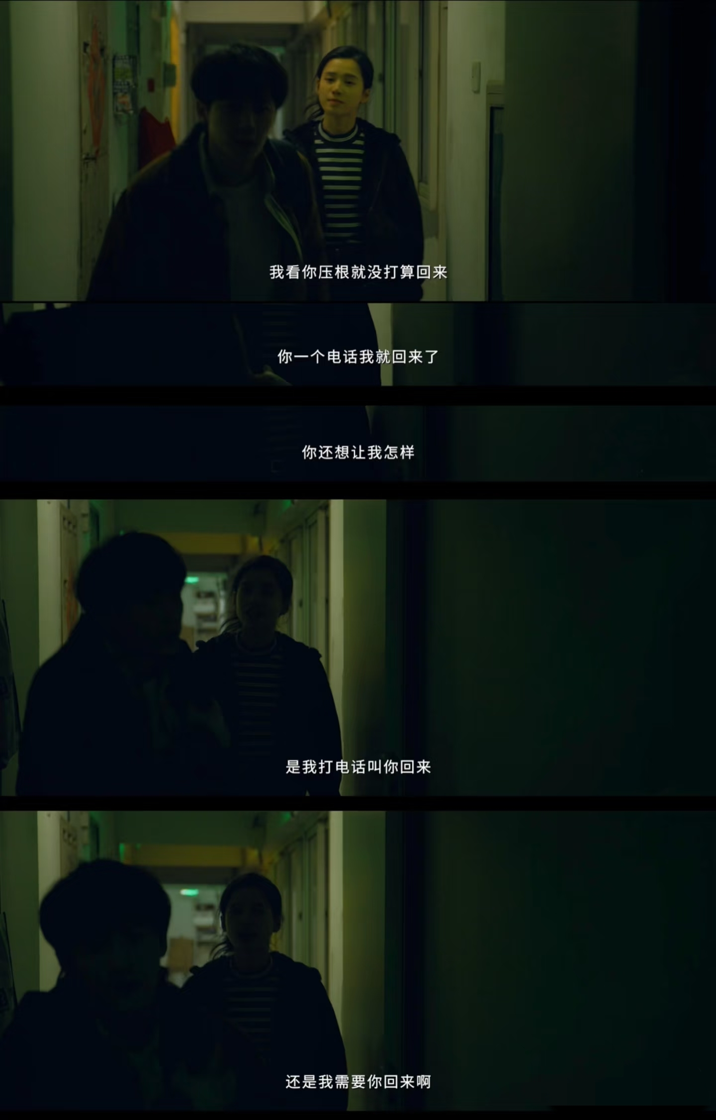 要不是女主手机特写,有滑动屏幕的动作体现女主犹豫,我真看不出女主想挽留。所以读到女主部分潜台词,我第一反应是,她真这么想?