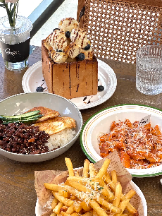 香酥鸡翅实打实的外酥里嫩,班尼可蛋也是在嘴巴里感受口感爆炸的程度,最爱的是上新的打抛饭,很特别的味道和口感,用干辣椒煸香猪肉粒,带着刺激的辣味,很有中式风格的融合口味!