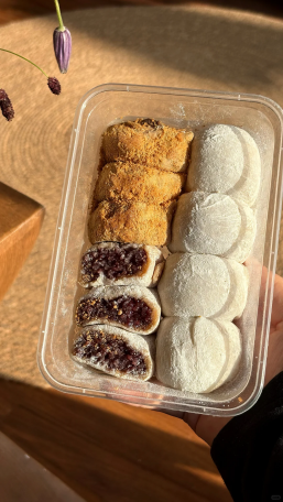 喜欢糯叽叽的不要错过了!!都是手工做的,推荐红豆和紫米味,很香甜一点也不腻,一般在孙家疃、山大、哈工大、利群出摊