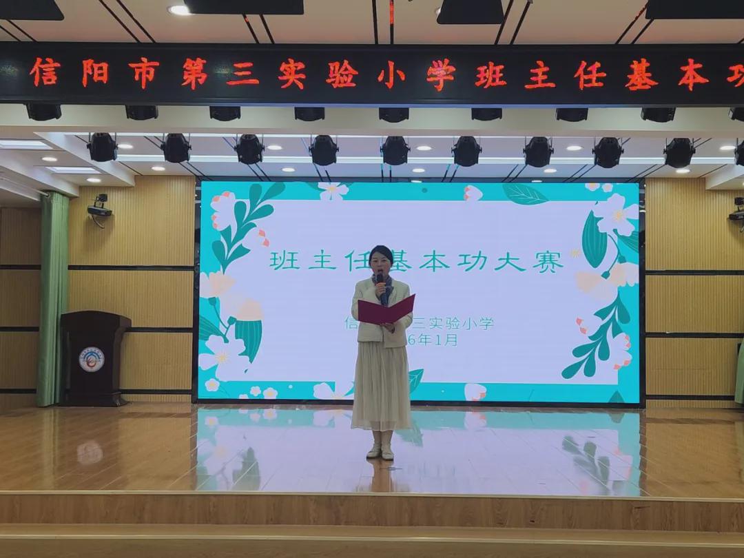 为进一步夯实班主任专业素养,提升班级管理水平,搭建班主任交流学习的平台,1月7日信阳市第三实验小学隆重举办班主任基本功大赛。6名经过层层选拔的优秀班主任齐聚赛场,围绕育人故事、带班方略、主题班会、才艺特长四大核心项目展开同台竞技,尽显新时代班主任的卓越风采。