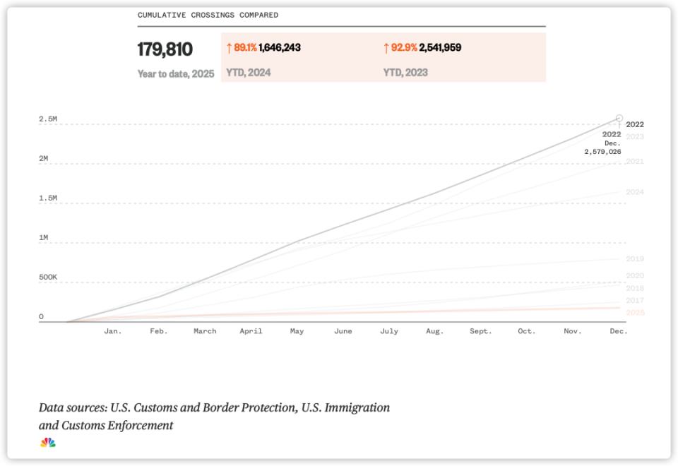 上图是《NBC》统计的2020-2025年入美的非法移民数据,最高峰的2022年全美涌进了257.9万,2020-2025年间,非法移民的总数量是947.77万,众所周知,非法移民更加倾向于前往民主党主导的加利福尼亚等蓝色州,然而加利福尼亚州有着全美第一大人口基础(3955万人),非法移民大量涌入的情况下,过去五年的总人口数量却在减少!说明有着大量人口选择离开加利福尼亚!