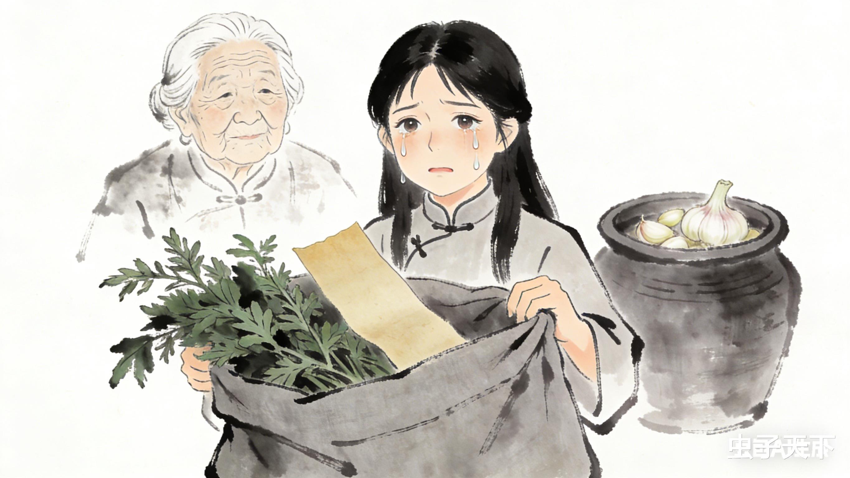 布包一拆,里面就一撮干艾草和一张泛黄纸条,是奶奶歪歪扭扭的字:“井水泡蒜记老家根,艾草护远方娃。蒜腌透才香,日子熬透才甜,奶奶不在,蒜就是我陪你。”