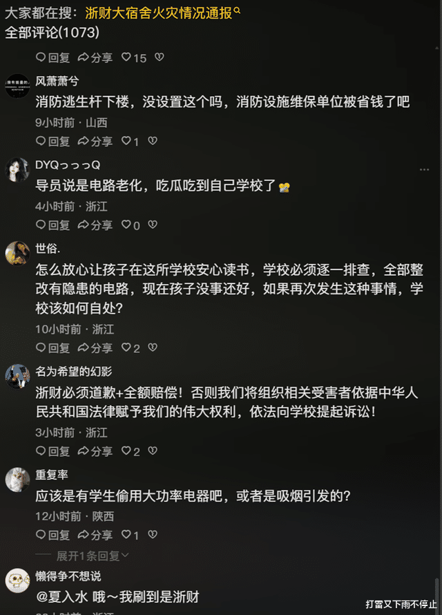 浙江财经大学1月16日轻飘飘的回应:“火情已扑灭,无人员伤亡,将加强安全检查”,仿佛这只是一场无关痛痒的小意外。