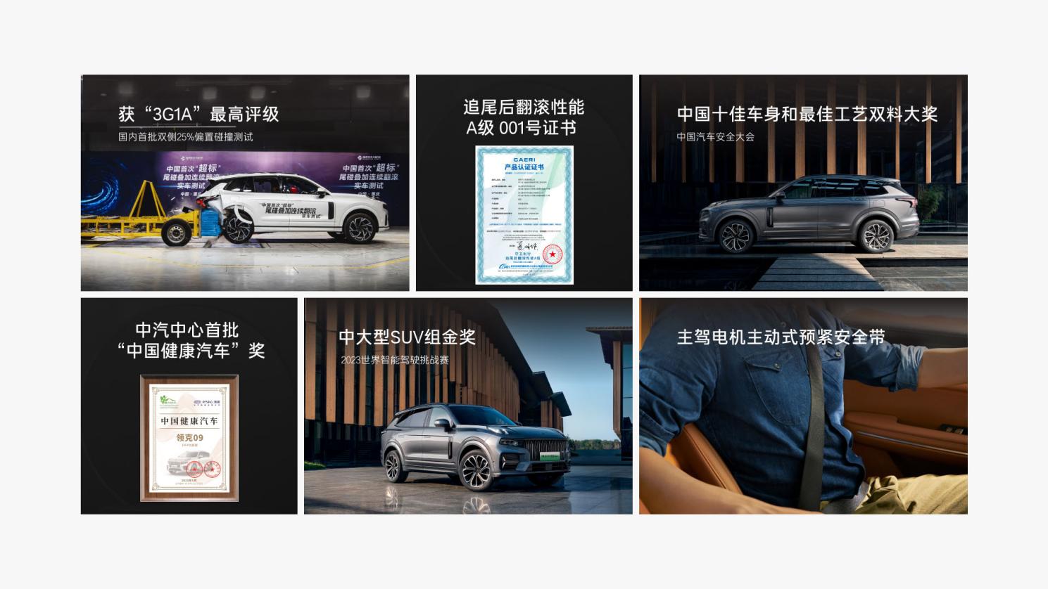 值得一提的是,领克09此前已通过权威测试验证其原始安全设计的可靠性。它完成了中国首次“超标”尾碰叠加连续翻滚实车测试,在同一台车上先后经受85km/h追尾测试与60km/h连续翻滚测试,最终取得全优成绩,获得“追尾后翻滚性能A级”001号认证,用专业数据印证了原始设计的硬实力。