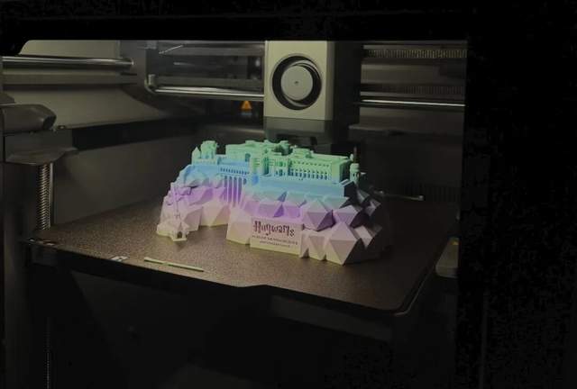 自从买了第一台3D打印机之后,短短3个月时间,周泽的架子上已经堆满了各种3D打印的作品,除了皮卡丘、马里奥、狐狸尼克等经典动画形象和各种好玩的冰箱贴,他还花了六七个小时打印了霍尔沃茨魔法学校城堡,整体采用渐变色的设计,看上去非常精美。