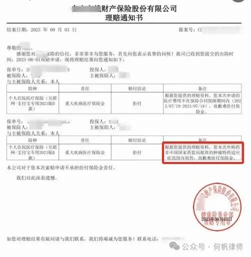 近日,团队陈伟、何帆律师成功代理了一起人身保险合同纠纷,当事人在支付宝上购买了百万医疗险,后不幸确诊乳腺癌,后因治疗需要,外购某靶向药累计花费13万余元,申请理赔被某保司以该靶向药并未列入中国国家药监局批准的用于治疗乳腺癌适应症用药范围为由拒赔。当事人家属找到了我们保险理赔律师团队,律师何帆、陈伟经过研讨并作为代理律师,提出了非常专业的代理意见,在法院进行了调解,保司同意赔付接近90%的购药费用。