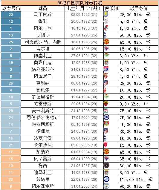 欧洲杯如火如荼,美洲杯又要开始了,这个夏天对于球迷很丰富。2024年美洲杯将于6月21日08:00揭幕,揭幕战是阿根廷对阵加拿大。本届美洲杯在美国举行,美国与乌拉圭,玻利维亚,巴拿马同组,分组形势非常好,出线应该问题不大。本届美洲杯身价最高的球队是巴西,身价高达12.7亿欧,巴西身价比法国还高点,只比英格兰低,领先美洲杯身价第二的阿根廷4.2亿欧,而美洲杯身价第三的乌拉圭,身价也只有4.8亿欧。这几年皇马欧冠表现出色,皇马球员普遍打出超高身价,皇马的前锋维尼修斯身价1.8亿欧,与姆巴佩,贝林厄姆身价相当,是世界身价最高的球员之一。而皇马的罗德里戈身价也高达1.2亿欧。另外,巴西的纽卡斯尔中场吉马良斯身价8500万欧;阿森纳前锋马丁内利身价7000万欧;曼城中场道格拉斯-路易斯身价7000万欧;阿森纳后卫加布里埃尔身价7000万欧。巴西还拥有皇马后卫米利唐,身价6000万欧;尤文后卫格莱松·布雷默,身价6000万欧,大巴黎后卫马尔基尼奥斯身价5000万欧。西汉姆联中场帕奎塔身价65000万欧。巴萨前锋拉菲尼亚身价5000万欧,西甲赫罗纳前锋萨维奥身价5000万欧。巴西17岁的帕尔梅拉斯小将恩德里克身价高达6000万欧,该名球员已经被皇马在2022年其15岁的时候签下,2024年7月年满18岁后正式加盟皇马。美洲杯身价第二的球队阿根廷身价8.05亿欧,这个身价与荷兰相当,几乎是第三的乌拉圭的2倍。阿根廷梅西与迪马利亚都已经36岁,两位世界杯冠军功臣仍然入选国家队。另外,后卫奥塔门迪也已经36岁,球队入选了三名老将。阿根廷身价最高的球员是国际米兰前锋劳塔罗,身价1.1亿欧,本赛季国际米兰意甲夺冠,劳塔罗打进24球,拿到意甲金靴奖,而且领先第二的弗拉霍维奇8球。另外,曼城前锋阿尔瓦雷斯身价9000万欧,本赛季阿尔瓦雷斯在曼城打进11球,因为有哈兰德这个强力中锋和福登,阿尔瓦雷斯作为第三选择能打进11球已经不错了。球队中场身价最高的两名球员是利物浦的麦卡利斯特与切尔西的恩佐,两人身价都有7500万欧。勒沃库森的帕拉西奥斯身价4500万欧,马竞的德保罗身价3000万欧。球队后防略显逊色,热刺后卫罗梅罗身价6000万欧,曼联的利桑德罗·马丁内斯身价4500万欧;马竞的莫利纳身价2800万欧。守门员是阿斯顿维拉的马丁内斯,身价2800万欧。美洲杯身价第三的乌拉圭4.8亿欧,美国3.45亿欧排名第四,哥伦比亚2.82亿欧,厄瓜多尔2.25亿欧,墨西哥2.04亿欧,加拿大1.81亿欧,巴拉圭1.34亿欧,其余球队身价都不到1亿欧,身价最低的玻利维亚只有1458万欧。而阿根廷虽然身价第二,夺冠数据却排名第一,球队夺冠数据2.75,巴西3.25,乌拉圭6.墨西哥12,哥伦比亚13,美国13,厄瓜多尔17。智利夺冠数据29,秘鲁51,维内推拉67,巴拉圭67,加拿大67,哥斯达黎加81,牙买加151,巴拿马151,玻利维亚151。