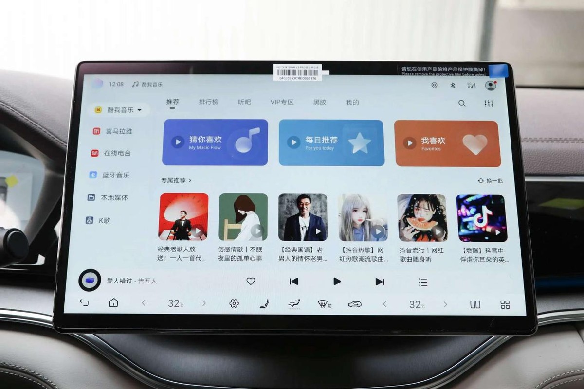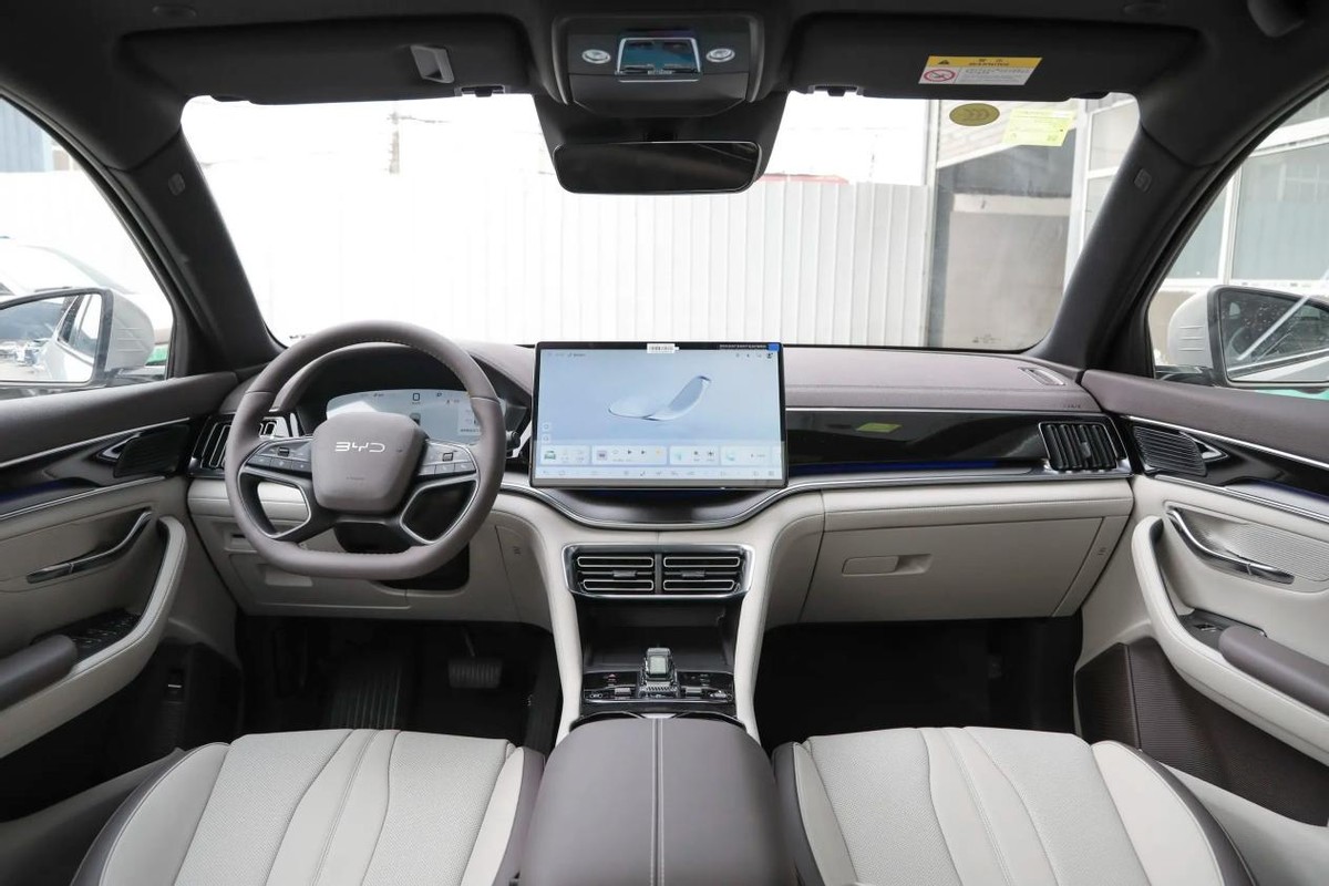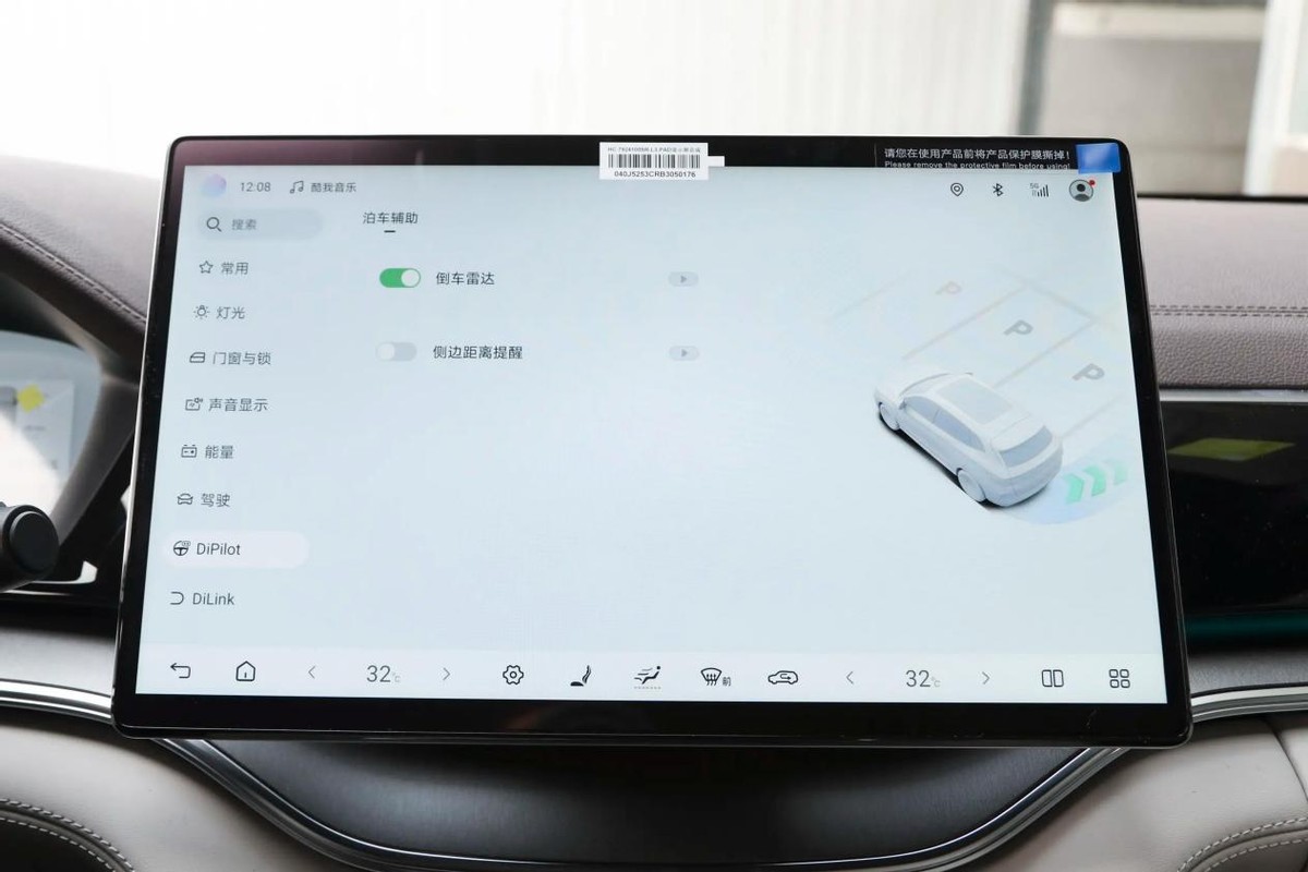 宋PLUS DM的内饰就相对年轻化一些,车内的方向盘采用皮质材料,附带对北方用户友好的方向盘加热功能,搭配电子挡把,操控方便。智能车机方面,宋PLUS DM配备了12.3英寸的彩色全液晶仪表盘、15.6英寸中控屏,其中中控屏采用D100车机芯片,和DiLink操作系统,具备5G网络、前排语音识别、应用下载、OTA升级等功能。其次,车内还配备了前排多层隔音玻璃、自动防眩目内后视镜、31色氛围灯、9个扬声器、原厂ETC、50W手机无线充电面板等配置,功能配置比较丰富。