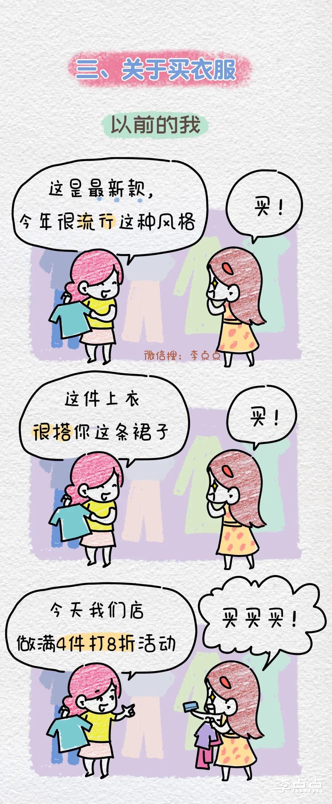 打扮自己、爱护身体、不断学习新事物、买少买精断舍离。