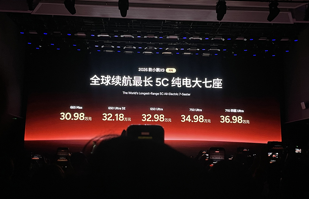 3月2日,2026款小鹏X9纯电版正式上市,共推出5款车型,售价区间为30.98万-36.98万元;同时上市的还有2026款小鹏X9增程版新增车型1602 Ultra SE,售价32.18万元。新车最大的亮点是针对驾驶辅助系统做了大升级,全系搭载第二代VLA,拥有更强大的驾驶辅助能力。