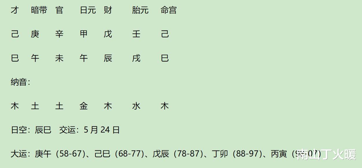 但实际上按照格局的理论,戊伤是用神,被癸杀合,就用神被制,戊伤被制,丁比就夺财,比肩夺财,就成了一般的运了。此运去世了,因为财也代表身体。