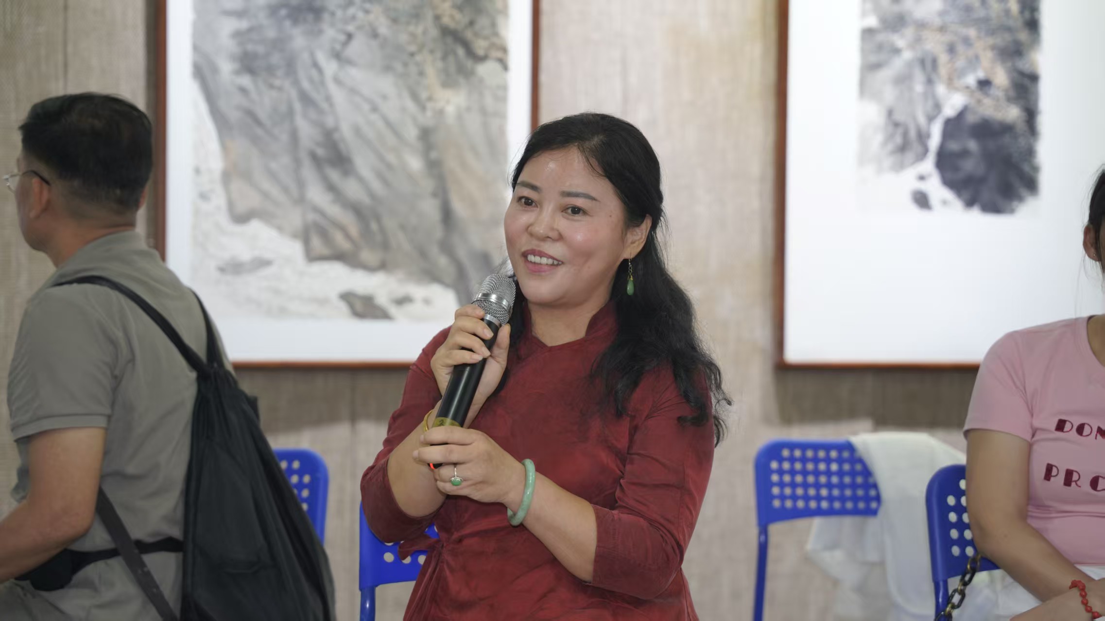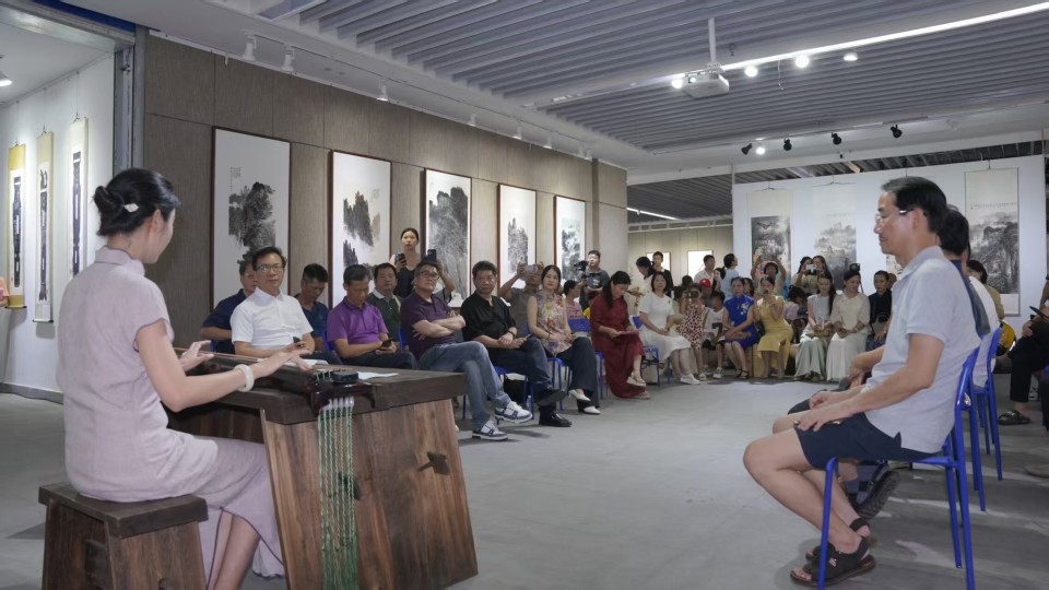 开幕式摒弃传统形式,化身沉浸式艺术沙龙。悠扬的古琴与洞箫合奏(演奏者:江西古琴专业委员会常务理事、新余雅南琴社主理人孟嬛羽及音乐家张志)在现场流淌,演奏了包括千古名曲《广陵散》在内的多首传统经典,瞬间将观众带入宁静深远的意境。精致的插花艺术点缀其间,更添雅致。艺术家们与观众围坐一堂,展开亲切互动对话,分享创作心得,现场气氛热烈融洽。