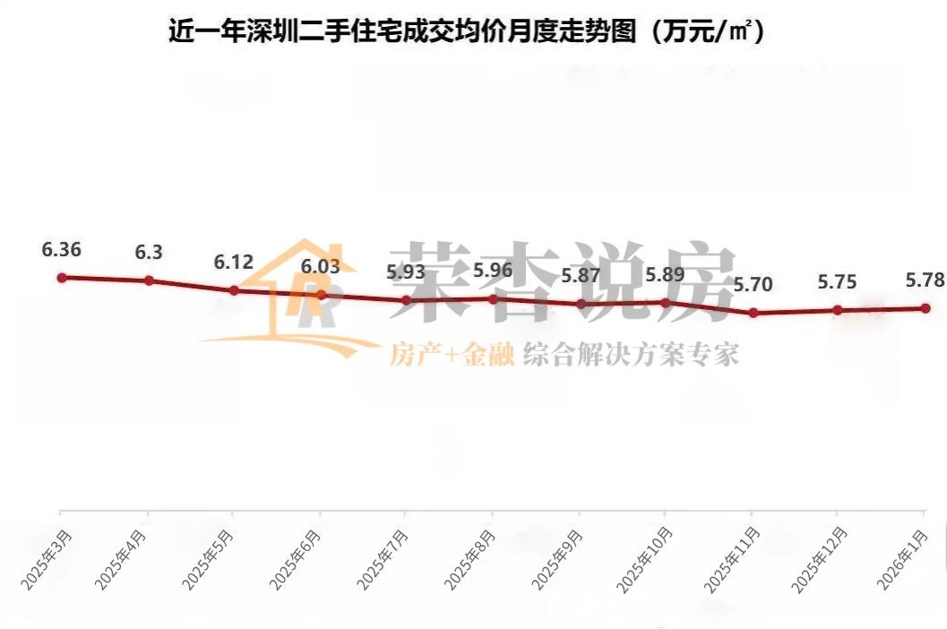 反馈到房价上,深圳1月二手房成交均价是5.78万/㎡,已经悄悄的连续上涨两个月了。