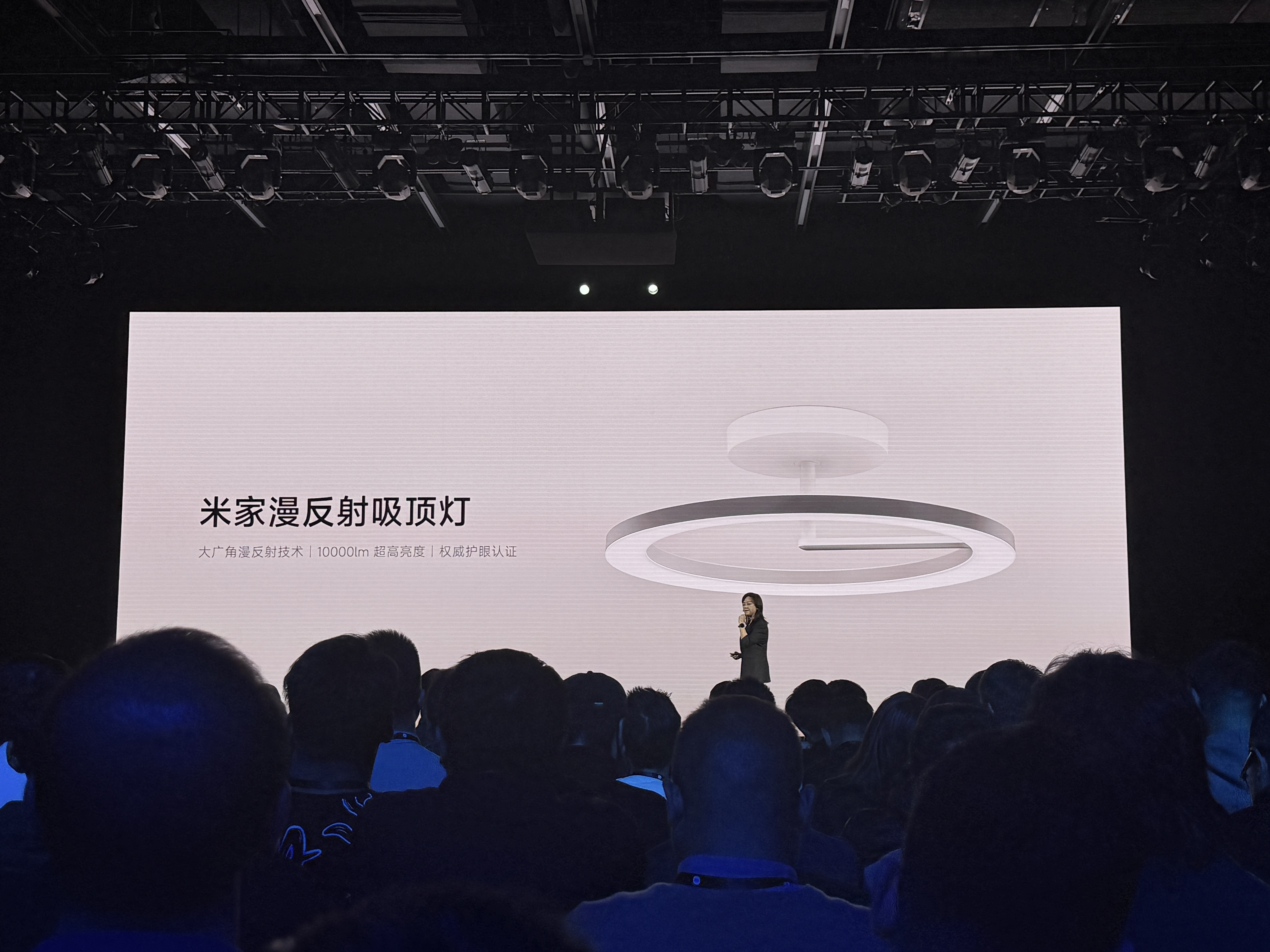最后一款家电设备是米家漫反射吸顶灯,其采用向上发光的方式,实现170度大广角发光,下发光光源更为柔和,上下光源同时开启可以达到10000lm,支持冷暖色、明暗亮度调节,售价为1899元。