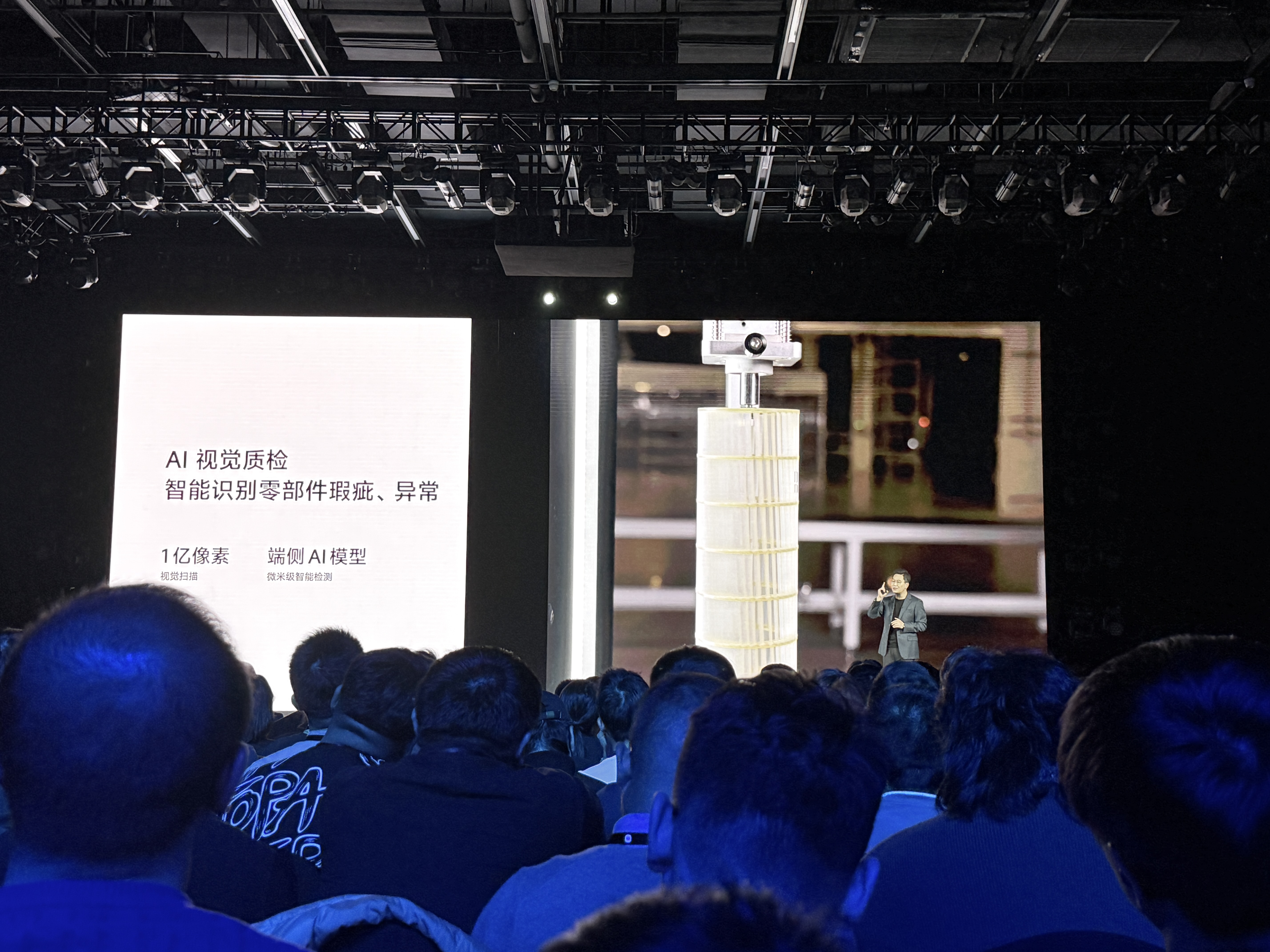 目前小米智能家电工厂的注塑车间、钣金车间黑灯产线,已经做到全流程100%自动化,拥有4.2公里天空运输带、161台AMR子导航机器人高自动化,其智能物流覆盖率达到94%。卢伟冰称,这使得在小米智能家电工厂6.5秒就可以下线一台高端空调。此外,该工厂基于1亿像素视觉扫描,端侧AI模型视觉识别、日常检测,小米智能家电工厂在整机、关键零部件都做到100%质检。