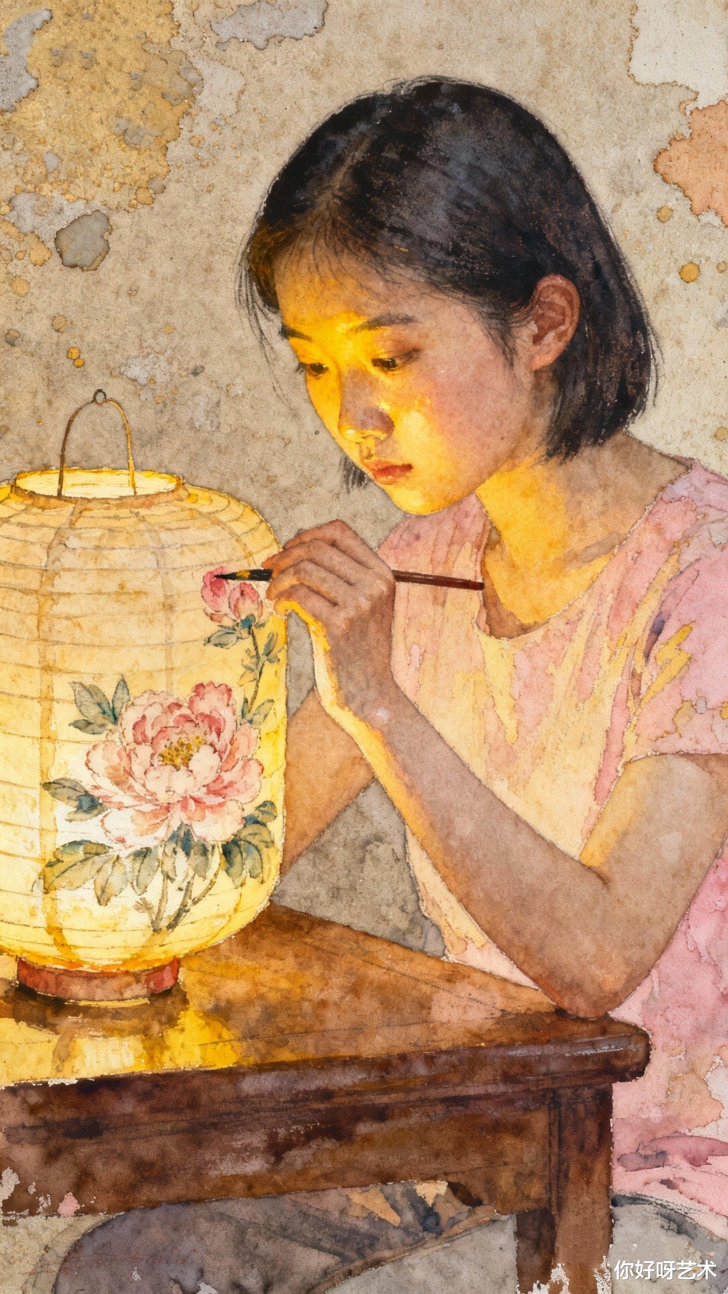 画至此处,我忽然觉得,这画中的少女,何尝不是另一个自己?我们都是生活的画者,在时光的长河里,用画笔记录下那些转瞬即逝的美好,也试图在喧嚣中寻得一片宁静。水彩的晕染,恰似人生的起伏,有浓有淡,有深有浅,但最终,都会在岁月的沉淀中,呈现出一种独特的韵味。