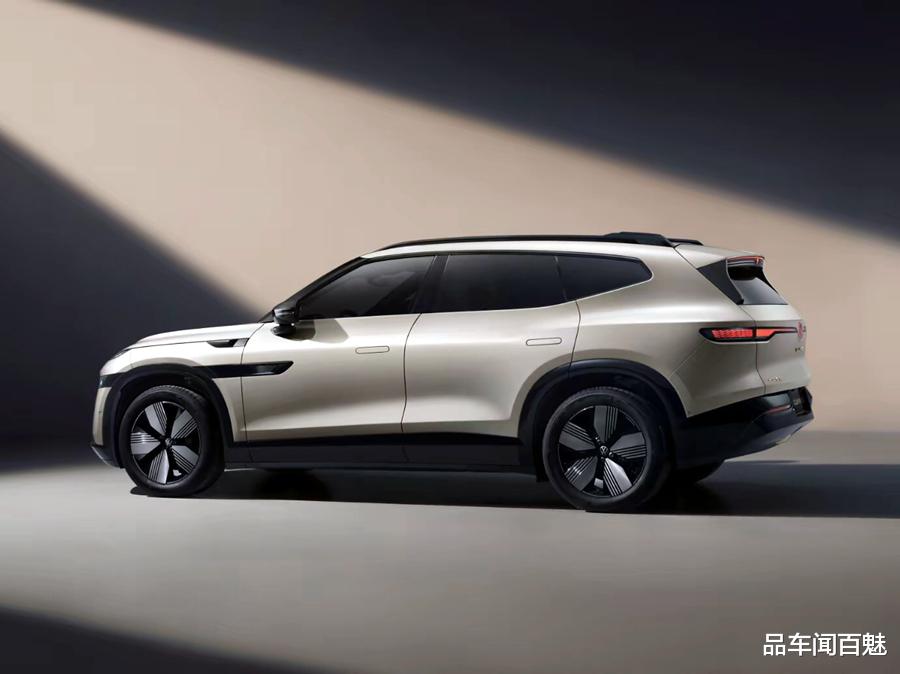 车侧一面,虽然与众08是一款大型SUV定位的产品,但其侧颜所采用的小幅度溜背布局以及流畅且不失力量感的腰线,加之隐藏式门把手、无框车门、熏黑哑光网格轮毂等设计细节,不仅丝毫不会臃肿,反而还有着轿跑SUV的灵动感与时尚气息。此外,新车长宽高分别为5000/1954/1688mm,且在选装空气悬架后,具备1672mm的车高;而轴距则达到了3030mm。