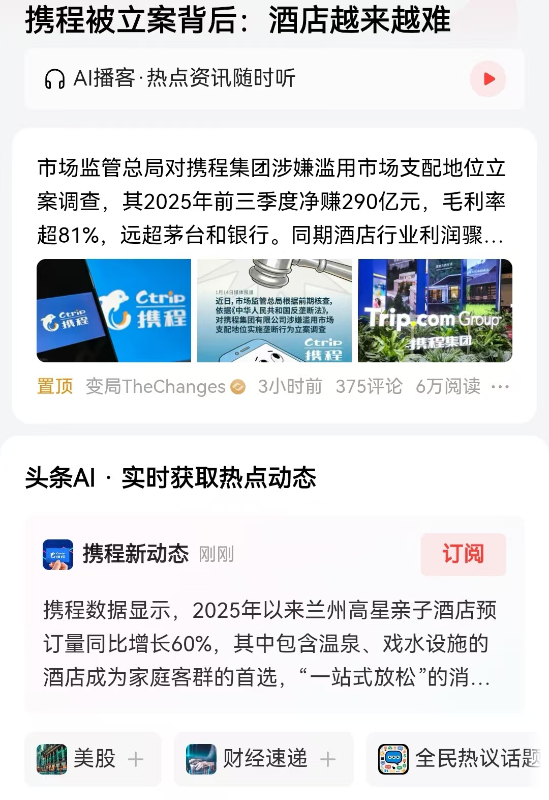 在2025年前三个季度,携程归母净利润290.13亿元,而2024年全年携程归母净利润170.67亿元,2023年全年携程归母净利润99.18亿元。现在携程算起来,平均每天净赚1.06亿元。利润的增长率真的好吓人,那是不是说明这三年他们玩弄大数据的算法,想尽办法以利润为导向,而不断实施各种涉嫌垄断的行为呢?