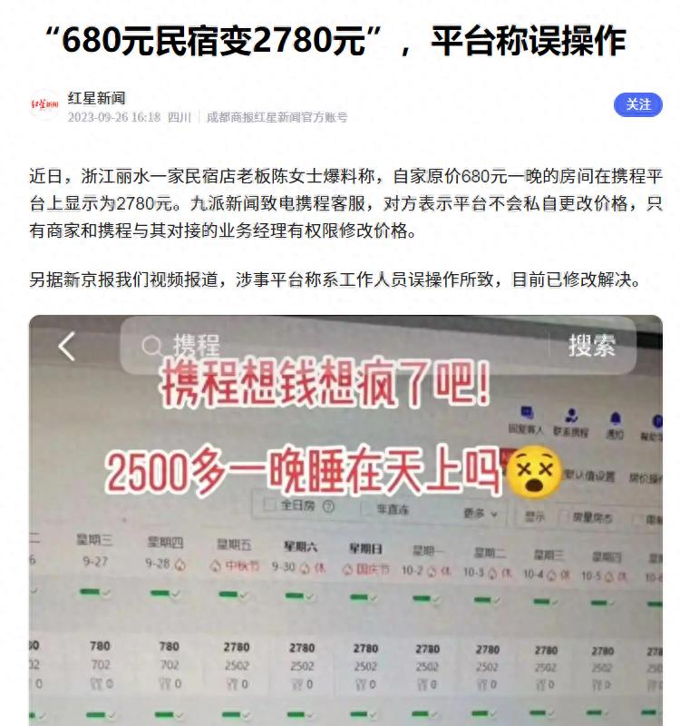 先从2年前国庆节前夕的一起热搜谈起,让我们看看某旅游平台的资本吃相有多贪婪?同时他们也是极其胆大妄为的,只要能谋取到利润,有时候什么事儿都敢做。官方媒体《红星新闻》在2023年9月26日报道了此事,而且指名道姓点到了携程的名字。