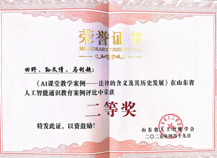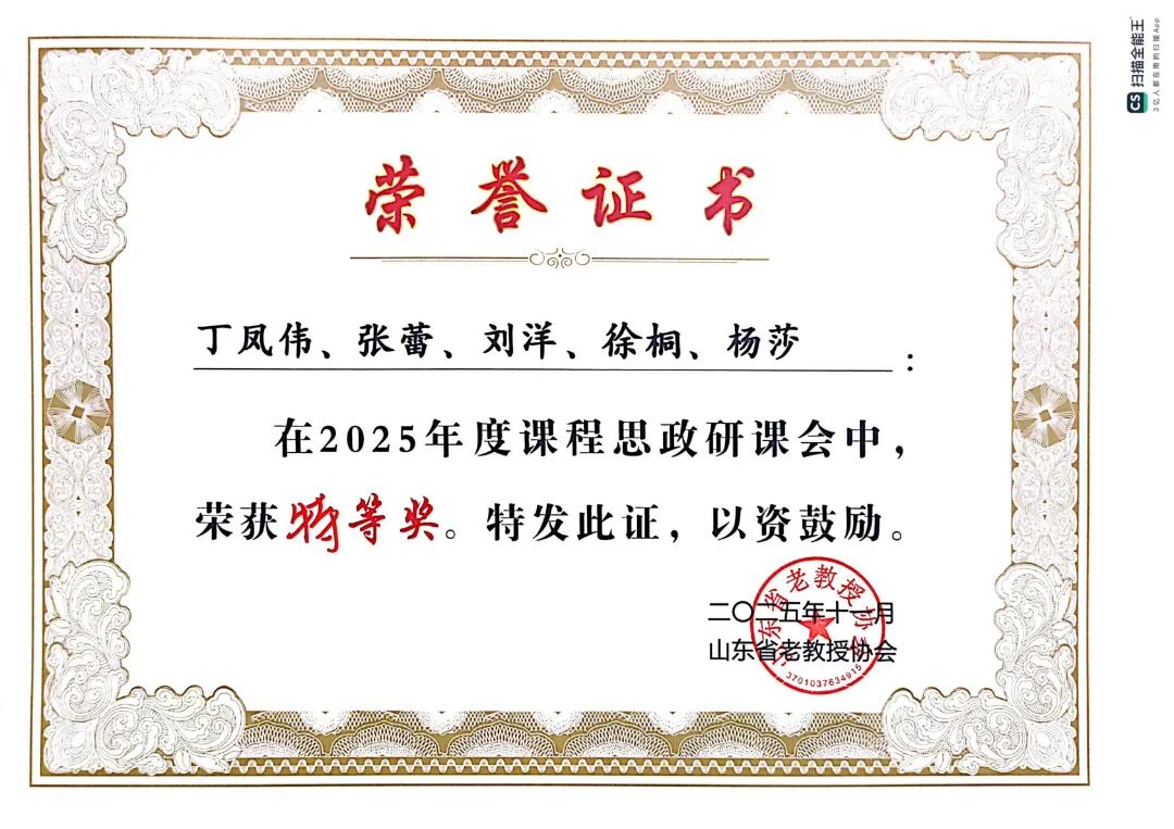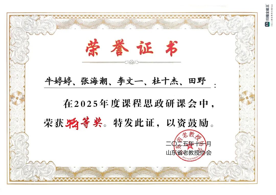 高质量完成全校思政课授课任务,100% 落实“开学第一课”,学生课程满意度较2024年显著提升;1门课程入选校级在线精品课程,选送山东省人工智能通识教育案例获二等奖;指导学生作品获山东省经典诵读比赛一等奖,教学实践成果获省级认可。