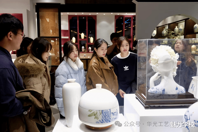 夜幕下的红旗坊陶瓷文创园灯火通明,师生们在这里看到了德化白瓷与现代设计结合的创新成果,包括融入国潮元素的文创产品、与当代艺术跨界的装置作品等,直观感受到传统工艺在市场化、年轻化路径上的探索。
