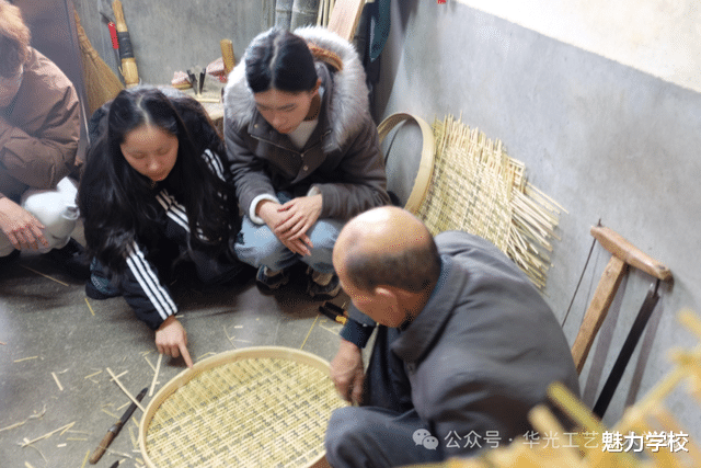 活动首日,师生团队抵达德化后直奔三班镇锦山村。在匠人工作室里,大家近距离观察竹编艺人的创作过程,学习核心技法,并亲手体验了编织。同学们纷纷表示,看似简单的竹编,实则蕴含着精密的计算与耐心的打磨,深刻体会到传统手工艺人的匠心坚守。