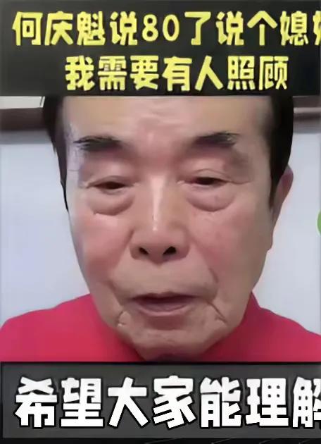 何庆魁称自己80岁了,需要媳妇在身边照顾,小娇妻看似只有50来岁。