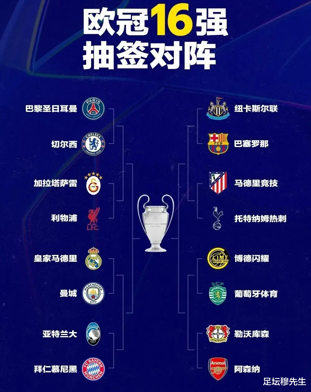 但话分两头,强队和强队碰面,就一定会产生精彩吗?未必。首先强队之间实力接近,有时过于谨慎,反而束手束脚。其次,强队和强队有时候会在不那么重要的赛段相遇,两队心照不宣磨洋工的情况非常普遍。有时候,反而是不那么强的球队相遇,尊重赛事,尊重比赛,尊重彼此,打出漂亮的足球。你是愿看齐达内罗纳尔多菲戈连汗都不出,给你敷衍90分钟,还是愿看一群二线球星拼死拼活打一场3:3的对攻大战?当然,的确有那种人迷球迷,只冲人去,不在乎比赛,高兴就好。但在越来越无赖的这个时代,肯定也有人,是冲着球去的,冲着精彩去的。本赛季欧冠八分之一决赛对阵形势已经出炉。36强经过两轮筛选(第一阶段和附加赛),决出来的肯定都是战斗力过硬的球队。但16队当然也可以分出三六九等。像切尔西对大巴黎,曼城对皇马,当然是前面说的强强对决。而利物浦对加拉塔萨雷,拜仁对亚特兰大,巴萨对纽卡斯尔联,就稍微差那么一点意思了,毕竟实力上有倾斜。