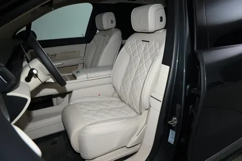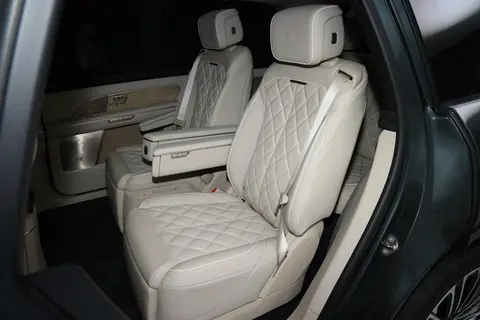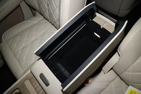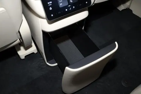 车侧的隐藏式水切工艺很有讲究,让侧窗形成一个纯平表面,再加上从车头环绕至车尾的宽舷肩线,塑造出饱满有力的型面,看着既简洁又有力量。当你带着手机走近车辆,门把手会自动弹出,智能电吸门轻轻开启,空气悬架在7秒内降低50毫米,迎宾光毯随之点亮,这套仪式感拉满的入场方式,让每次出行都显得格外优雅,不管是自己开还是接待客人,都很有面子。