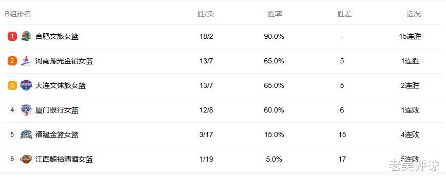 WCBA常规赛全部结束,女篮联赛A组和B组的排名全部出炉。
