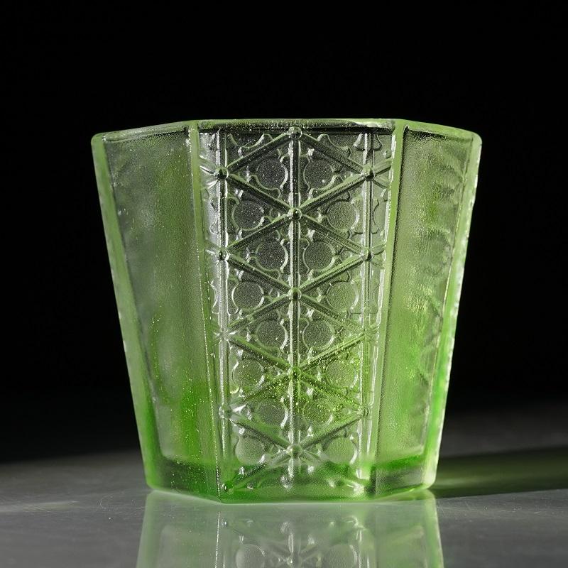 品鉴古法琉璃灵心连绵杯,可从 “色、透、匀、形、敲、照” 六方面入手。色泽艳丽,表面光可鉴人、流光溢彩的为上乘之作;通透度高,不同角度注视能带来不同观赏效果的为佳品;颜色过渡匀称自然,无生硬之感的更具价值;形态优美,线条流畅,做工精细的堪称上品;两件琉璃互相轻敲,声音清脆悦耳,有金玉之音的品质较好;在普通灯光照射下,光彩夺目,婀娜多姿的是优质琉璃。