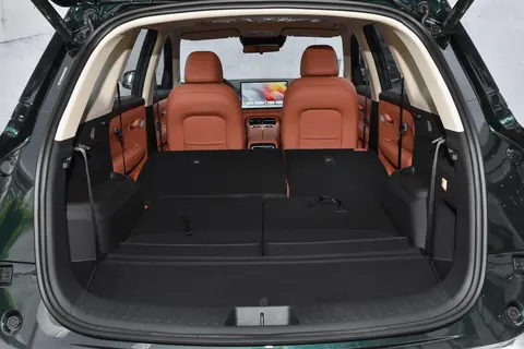 蓝电E5 PLUS 先享版的车身长4760mm、宽1865mm、高1710mm、轴距2785mm,虽然采用了常规的2+3五座布局,但在需要的情况下也可选装2+3+2七座排列。属于标准的中型SUV规格,但宽度、高度提升颇多,头部空间问题完全不用顾虑,即使是北方个头较大的用户,容纳起来也是足够轻松的。车顶部分坡度较轻,后排的头部余量同样充裕,满足家庭多乘员的要求也已足够,后排三座满员一样不用拥挤。至于腿部空间问题,轴距延伸已经足够应对,而且行李舱基础容积465L,放倒座椅最大可提升至1701L。