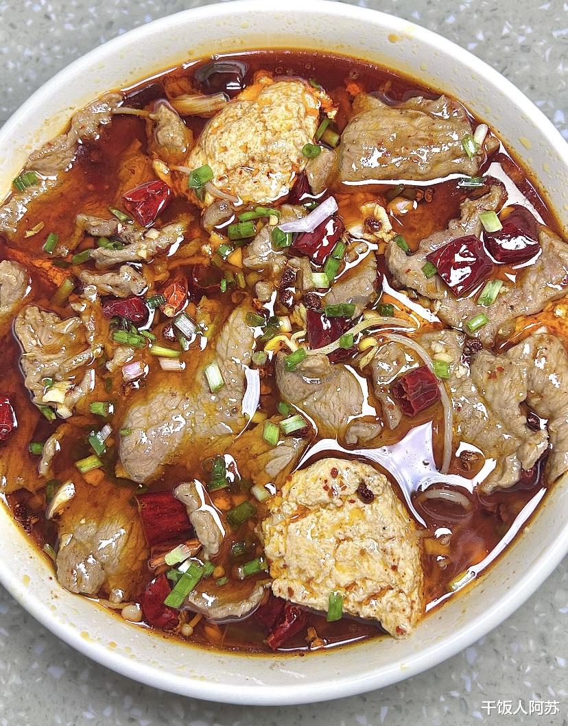 随后,加入适量清水煮开,调入一勺盐和一勺生抽,根据个人口味调整咸淡。将豆芽和金针菇放入锅中烫熟,捞出铺在碗底作为垫底。接着放入豆花,煮约3分钟,让豆花充分吸收汤汁的麻辣味道。最后,将腌制好的牛肉片逐片下入锅中,小火煮至变色即可捞出,避免煮老影响口感。将牛肉和汤汁一同倒入碗中,撒上蒜末、干辣椒段和葱花。