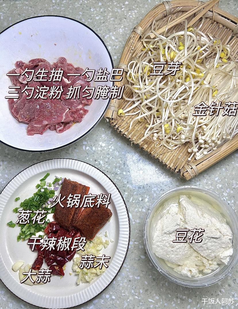 配菜方面,豆芽和金针菇是经典搭配,既能吸收汤汁的麻辣,又能增加菜品的层次感。此外,还需准备大蒜、葱花、干辣椒段、花椒和火锅底料,这些调料是形成麻辣风味的核心。郫县豆瓣酱是必不可少的调味品,它能为汤底提供浓郁的酱香和红亮的色泽。