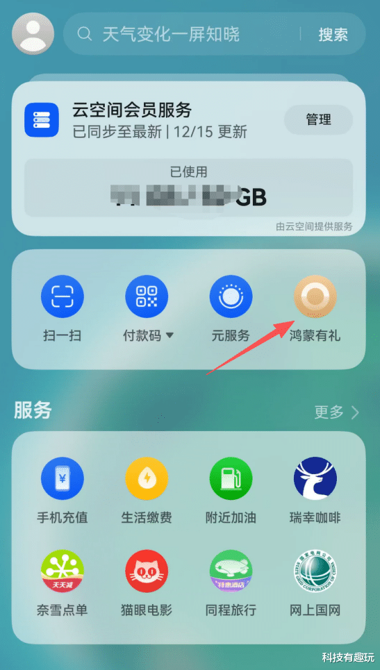 领这个福利的方法也很简单。升级完毕后,桌面右滑到负一屏,看到“鸿蒙有礼”的图标即可进入。