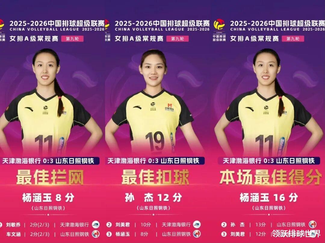 与之形成鲜明对比的是,山东女排几乎每个位置都有亮点,副攻线的杨涵玉与王文涵火力全开,不仅在进攻端效率极高,拦网上更是如铜墙铁壁般压制天津队的进攻。