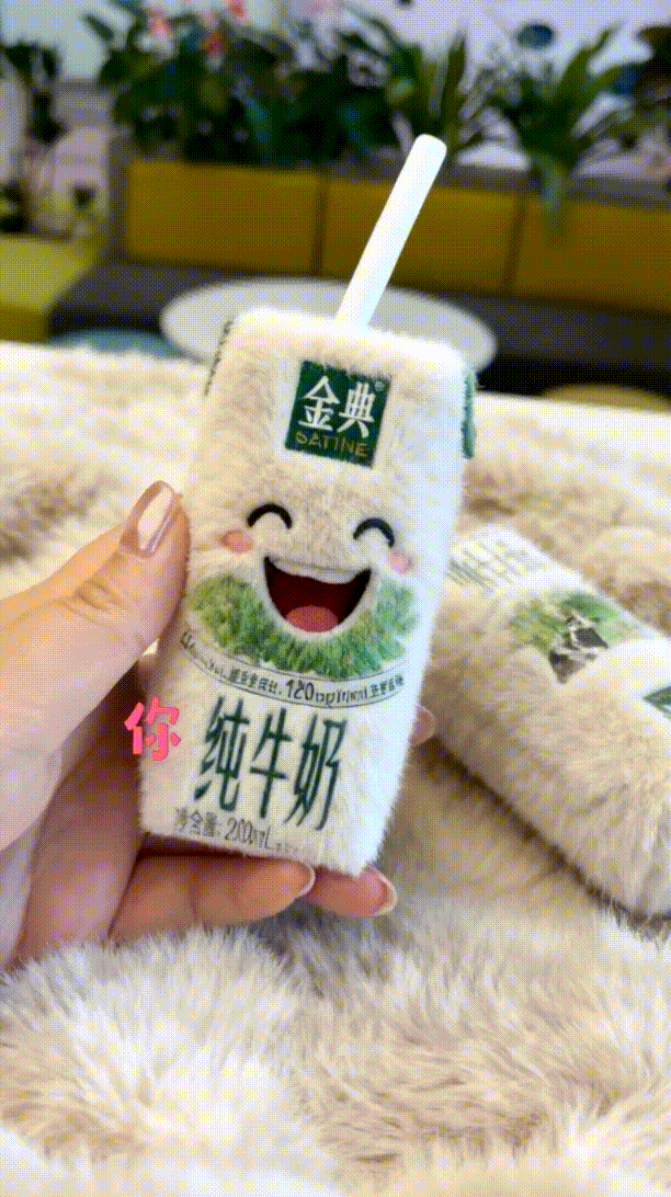 与此同时,品牌端的集体行动进一步强化了这一趋势的商业价值。在抖音商城中,大疆、小米、海尔、伊利等覆盖科技、家电、食品、茶饮乃至教育等不同领域的商家,不约而同地将LOGO 和产品 “ 茸化 ” ,用统一的视觉语言传递温暖、软萌的品牌形象。这种跨品类的集体行动,不仅强化了 “ 毛茸茸 ” 的符号属性,更在潜移默化中完成了市场热度与品牌好感度的双向赋能。