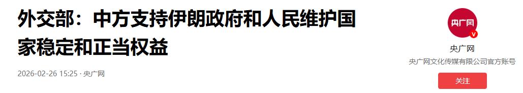 信息来源:外交部:中方支持伊朗政府和人民维护国家稳定和正当权益