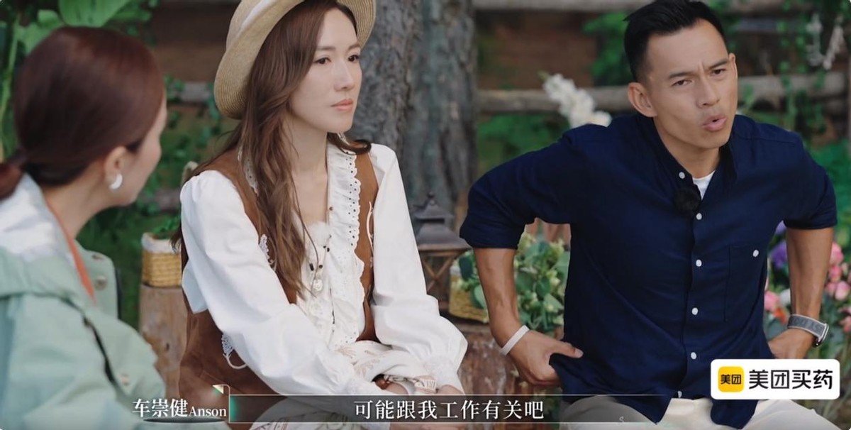 在自己的朋友面前,他立刻收起对李施嬅的敷衍,后背靠椅、翘着二郎腿,姿态高傲地侃侃而谈,俨然一副感情通透者的模样,嘴上说着来节目是找答案,却对感情现状避而不谈,十足的爱面子、装模样。