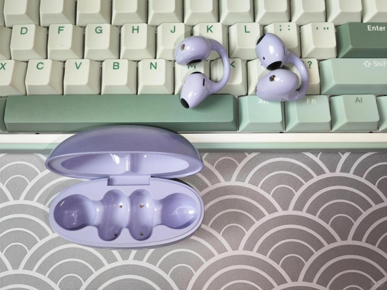 这款耳机的耳夹设计是真的花了心思,它那个自研的“灵活动钛弧” 结构太实用了,还能自己调夹紧力度,耳机怎么晃都不会移位,重量上,单耳才 6.5 克,戴在耳朵上基本没什么负重感。最贴心的是和耳朵接触的关键部位,做了不等距的硅胶加厚处理,摸上去软乎乎的,亲肤不闷汗,完全不会磨耳朵。再加上它是不对称的弧度设计,能让耳前耳后的受力都很均匀,戴一整天也没觉得不舒服。