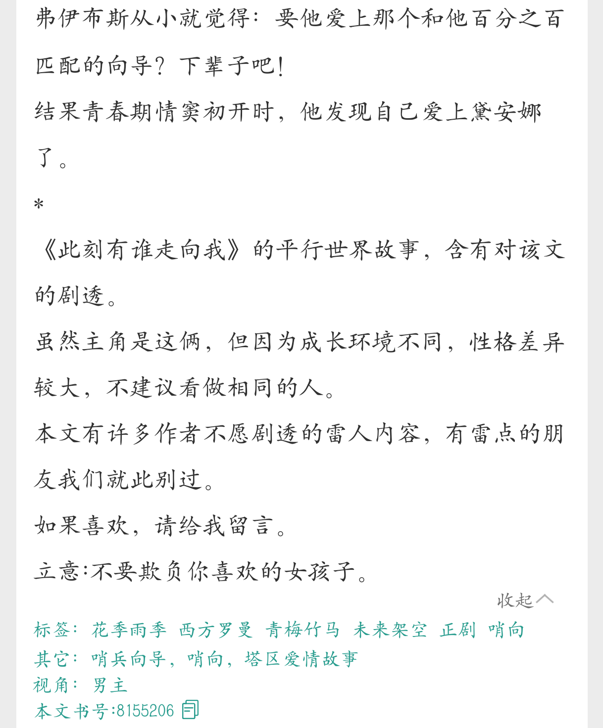 那么,为什么,这样100%匹配的哨兵和向导,不可以当做单纯的战友和同事来相处,一定要从小就向他们灌输一定会爱上对方的思想,然后看着他们在青春期中懵懵懂懂跌跌撞撞?