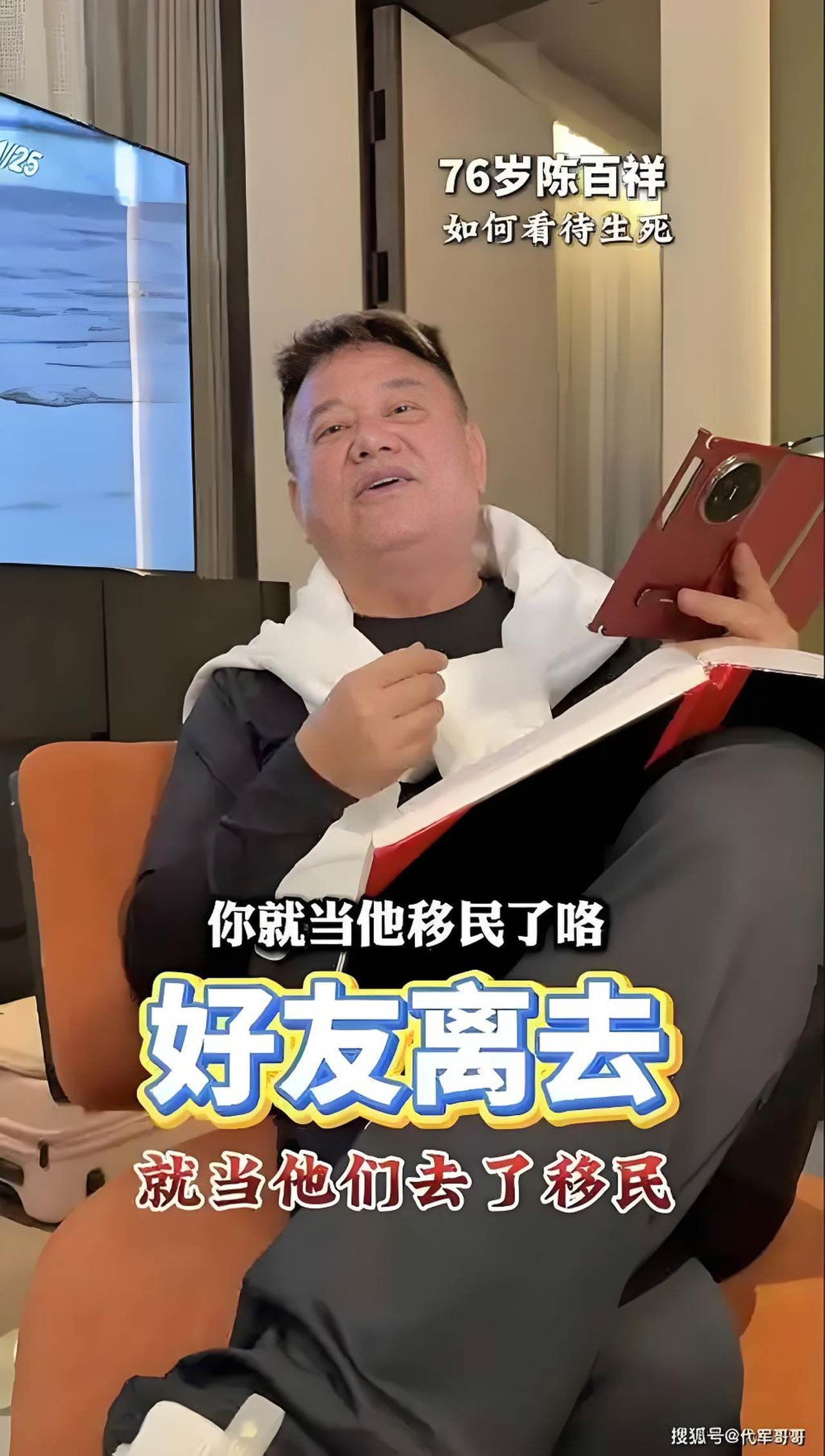 陈百祥表示,生老病死是自然规律,人无法控制身体的变化,也无法预知生命的长度。面对亲友的离世,他选择用一种轻松的方式去理解:“我就当他们移民了,就像去了巴西,坐飞机要三十几个小时,几十年见不到一次,但心里知道他们在那儿就好。”