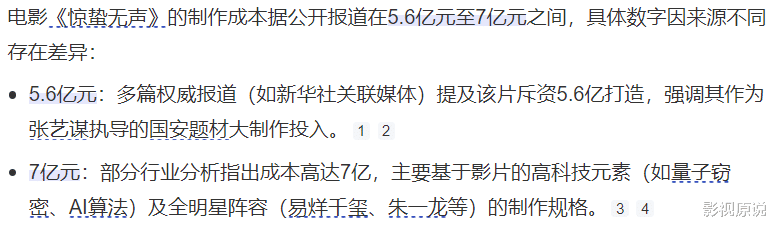 《惊蛰无声》成本高达7亿人民币,预测票房不到10亿人民币,预计亏损超4亿人民币。